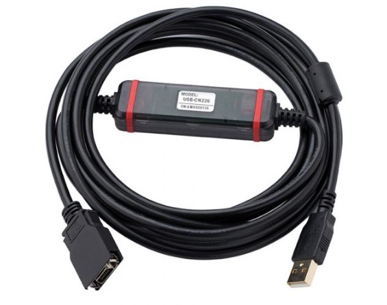 USB-CN226 is the programming cable in which the USB interface provides both the serial connection and RS232 signal conversion. Under the control of a computer-driven driver, the programming cable makes it possible for the computer’s USB interface to simulate the traditional serial (known as COM interface), thus various existing programming software such as communications software, monitoring software, and other applications can be normally used. The working power supply of this cable is directly from the USB port, but not the PLC programming interface. The two-color LED on the converter box indicates the data’s transceiving status.